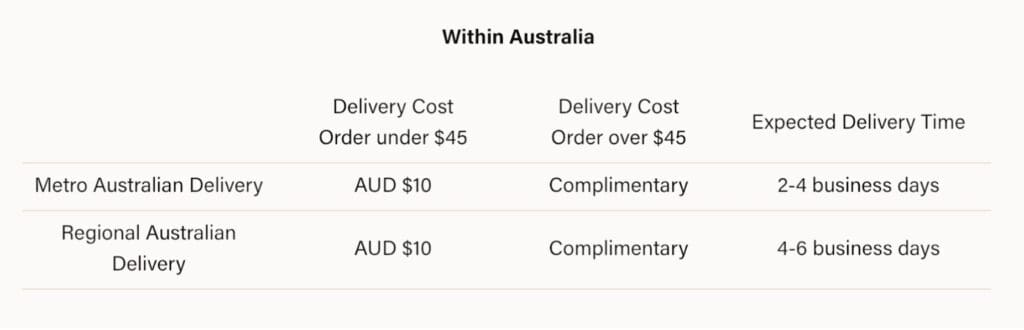 We currently only deliver to Australia. We’ll get your order out ASAP, but we cannot guarantee exact shipping times. The expected delivery times listed below are estimates only.